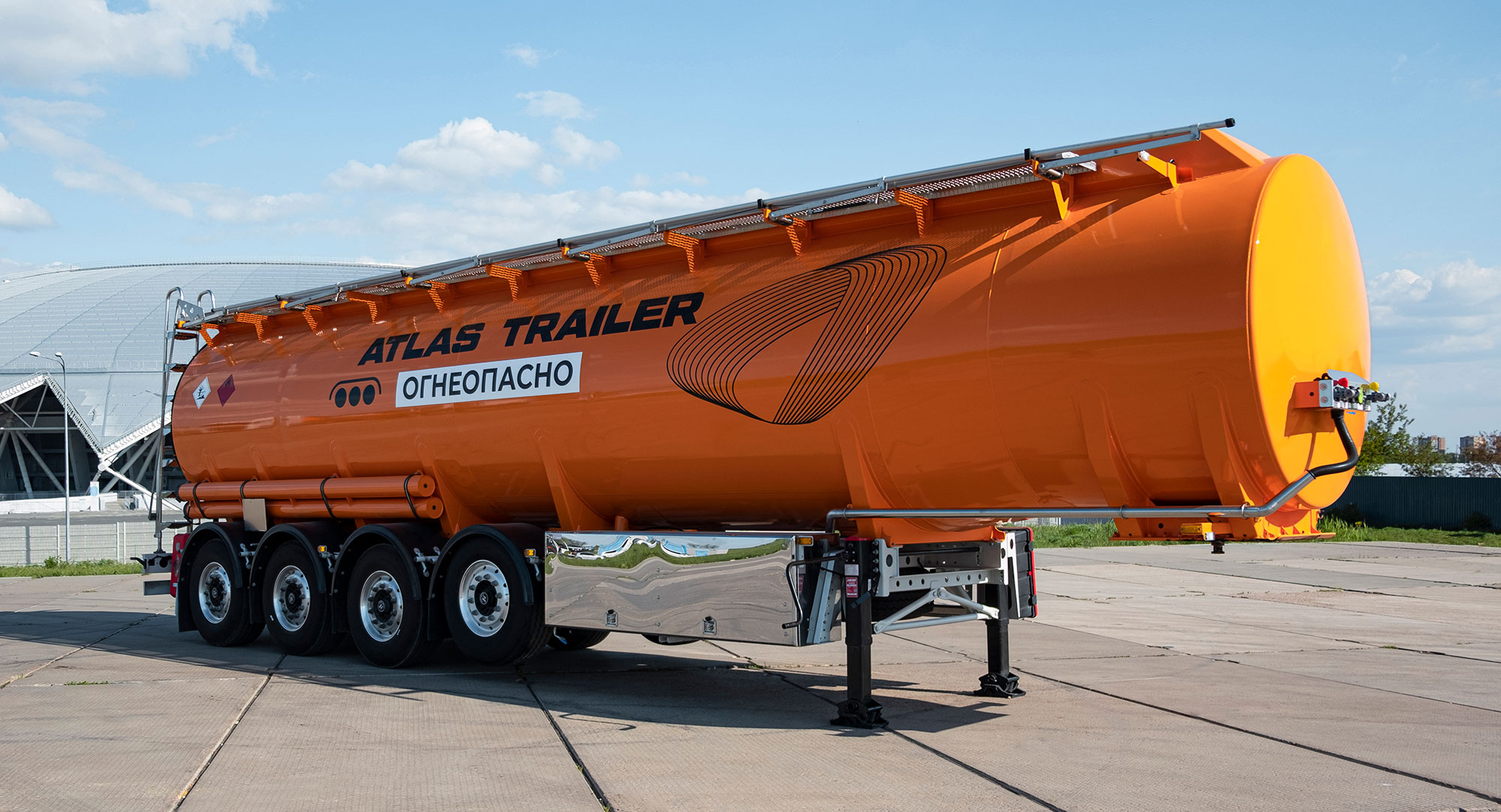 Атлас Трейлер предлагает широкий выбор новых полуприцепов-цистерн различных вариантов комплектаций с объемом 32 и 36 м3. В нашей товарной линейке есть цистерны для транспортировки светлых и темных нефтепродуктов. Бочки изготавливаются из низколегированной стали или алюминия и устанавливаются на подкатную тележку производителя Hwagain с пневматической подвеской, обеспечивая надежность и комфорт в эксплуатации. Бензовозы и битумовозы отличаются надежной тормозной системой WABCO, которая гарантирует безопасность во время движения.